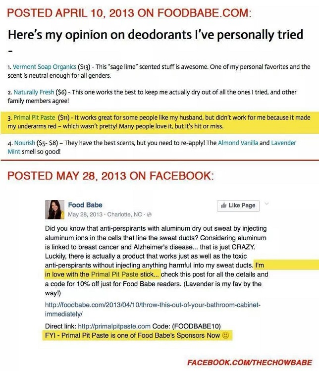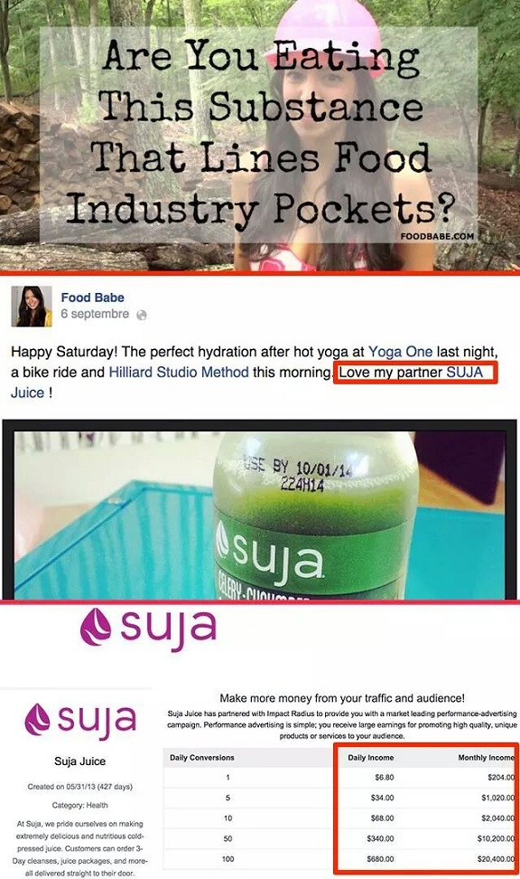 Like most pseudoscientists that use scare-tactics and love bombing to keep customers, Food Babe has her own shop where you can buy all of her favourite products. In a recent article on Adage.com (“Activist or Capitalist? How the ‘Food Babe’ Makes Money“), the authors discuss the following: