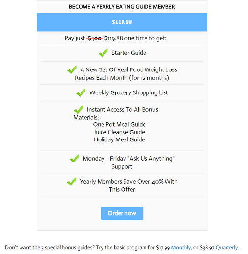 Food Babe also has a basic program for $17.99 Monthly, or $38.97 Quarterly.